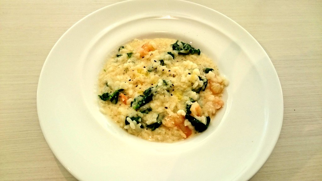 前菜5種盛り、小海老とちぢみほうれん草のクリームリゾット
