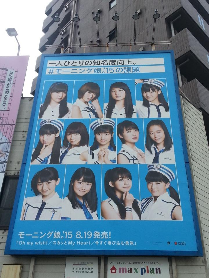 麻布十番駅近くの広告。一の橋交差点の角に掲示。4番出口を出て横断歩道を渡ると広告の真下に来ます。#morningmusume15 pic.twitter.com/m3JITdMBQQ 2015-08-10 17:46:00