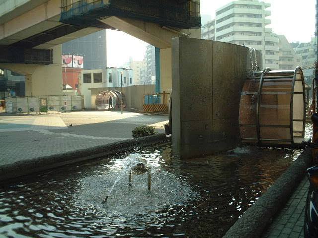 首都高速一の橋インターチェンジの下にある公園です。湧水を利用した噴水がこの公園の特徴で、特に毎正時、古川の両岸から噴出する水のアーチは必見です。また、ライトアップされた夜間は、光と水の幻想的な雰囲気に包まれます。