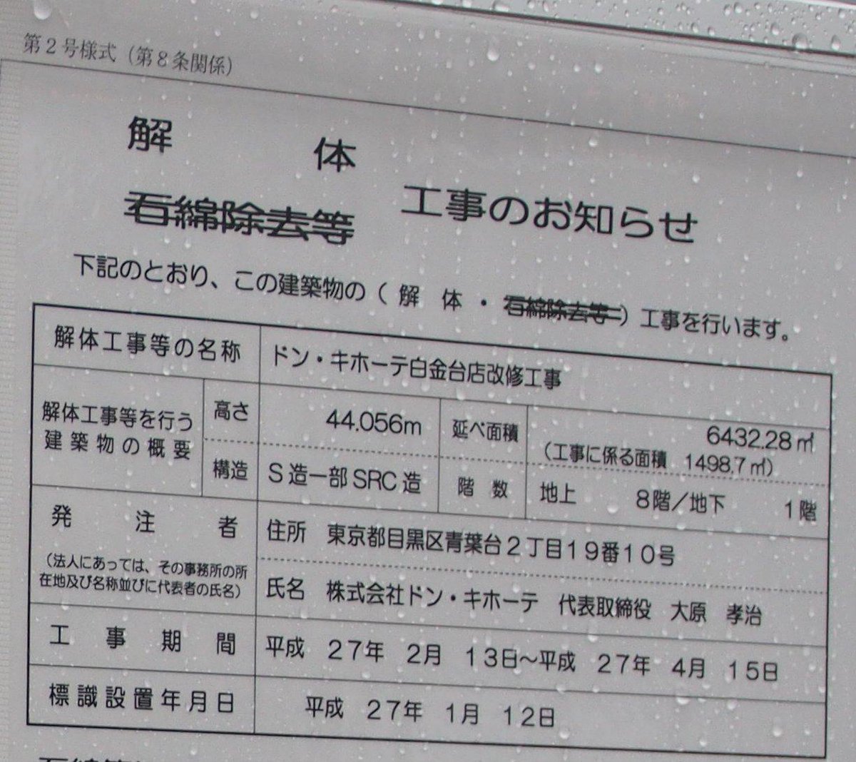 白金台の東急ストア跡地に………ドンキホーテ白金台店!? 実家の近所(というより母校の小学校の近所)にドンキ、って凄く複雑。 pic.twitter.com/pUeRSIr4Zm 2015-02-19 18:09:00