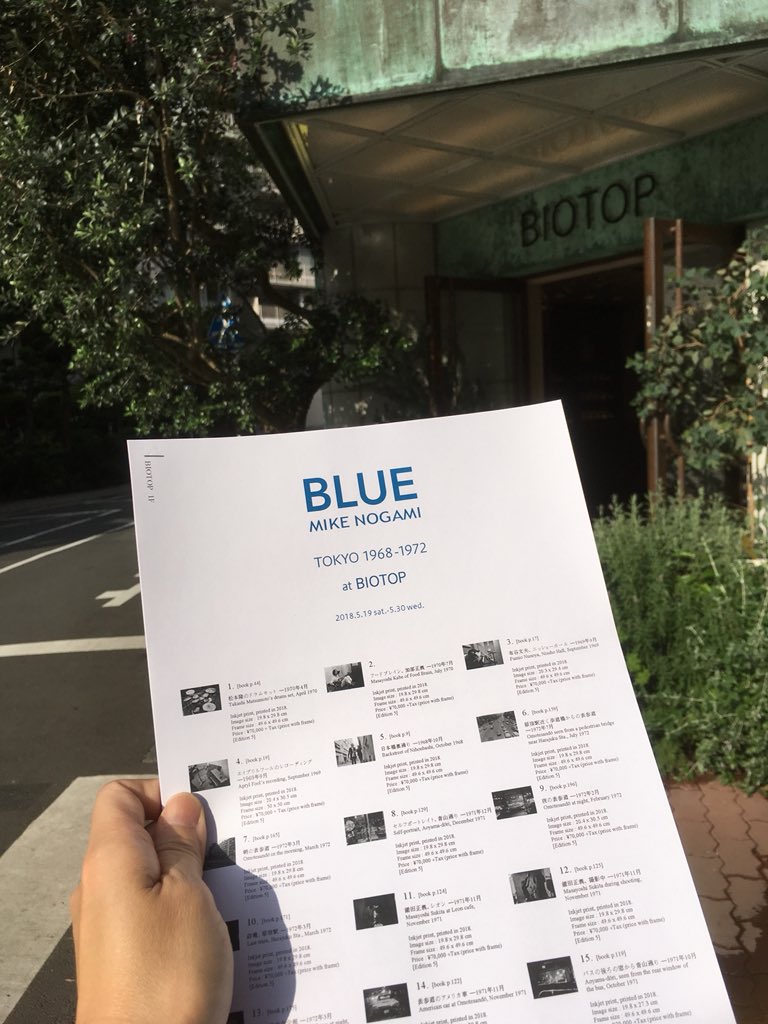 本日5/19より白金Biotopにて野上眞宏(Mike Nogami) 写真展「Blue: Tokyo 1968-1962」オープン。会場にて同題写真集先行発売、書店発売は6月1日から。詳細は追って。 pic.twitter.com/RWiwBQzYOS 2018-05-19 10:06:00