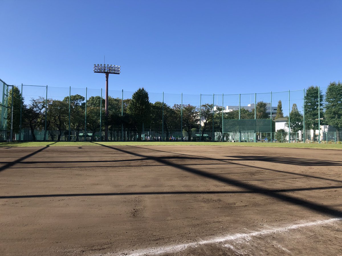 高島平から麻布運動場へ移動して来ました。初めて来たのですが、まともにセンターに太陽が落ちるため、しばらく投球も打球も見えそうにありません(^^;; pic.twitter.com/wb1FebFiQD 2018-08-26 18:19:00
