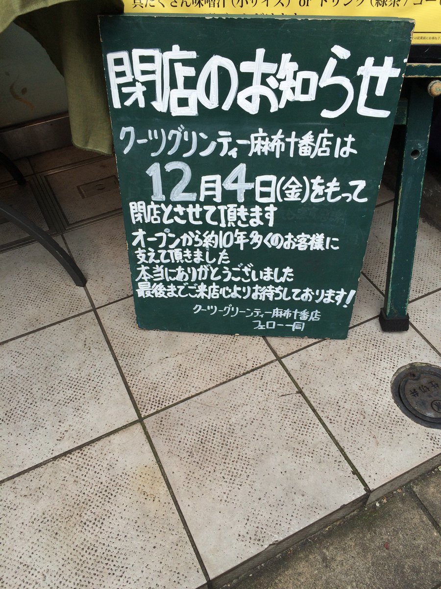 あら残念。2回しか来たことなかったけれど(^ω^;)10年も続いていたのは意外。 (@ KOOTS GREEN TEA 麻布十番店 in 港区, 東京都) swarmapp.com/c/1wdBiVXuZ9o pic.twitter.com/9FFE1MgbTD 2015-10-29 10:10:00