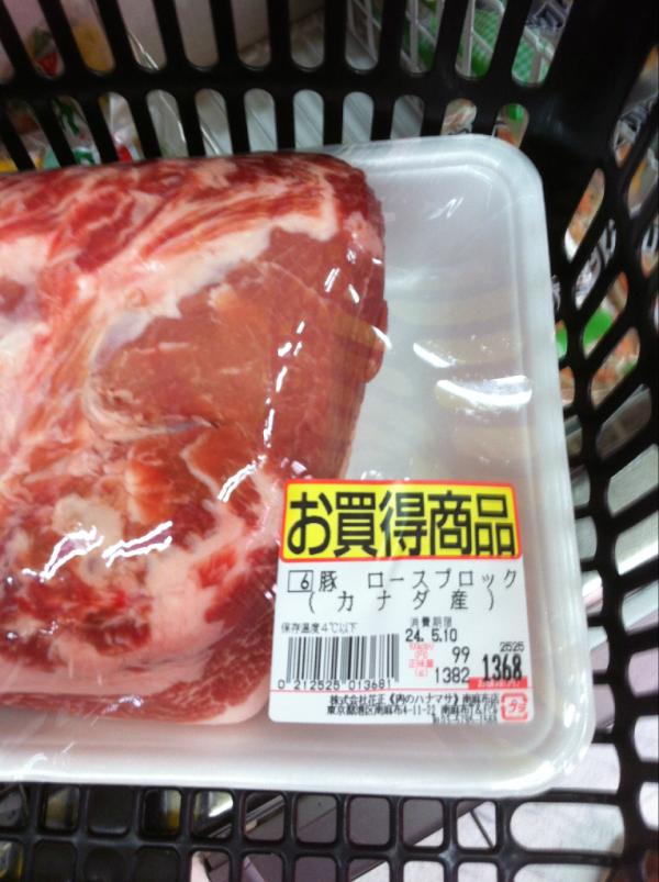 古川橋ホープ軒で、もやしW麺半分ラーメン食った後に、衝動的にハナマサ南麻布店で塩麹豚用のロース肉1382gを1368円で購入したら嫁さんに怒られたなう。 pic.twitter.com/T3j4Kcpv 2012-05-08 14:11:00