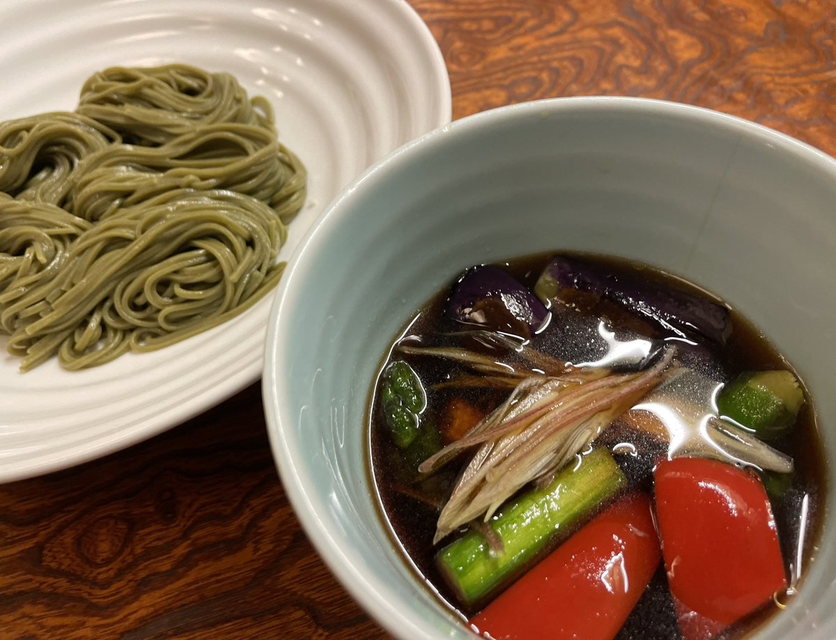 温かいお汁でお茶の香りが立ち上がります☺️#更科堀井 #お土産そば #麻布十番グルメ #茶そば #お中元 #冷麺 #野菜たっぷり pic.twitter.com/YEJ31Rq0e8