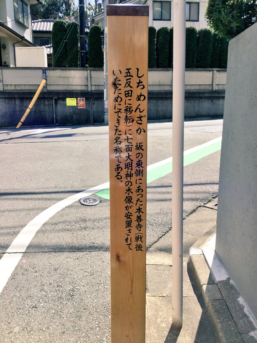 『 坂の東にあった本善寺(戦後五反田へ移転)に七面大明神の木像が安置されていたためにできた名称である。』 pic.twitter.com/DX7D1hWHu6